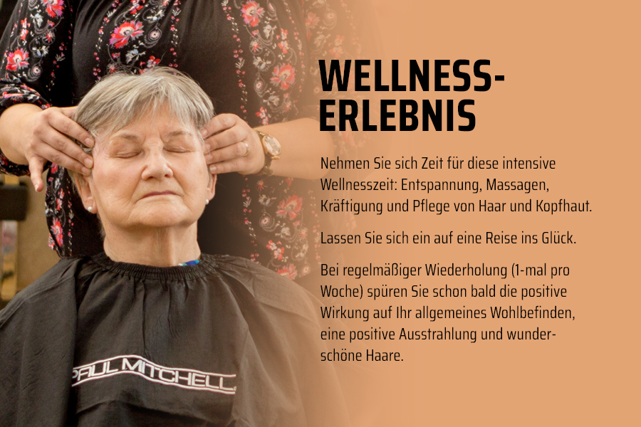 Nehmen Sie sich Zeit für diese intensive Wellnesszeit: Entspannung, Massagen, Kräftigung und Pflege von Haar und Kopfhaut.